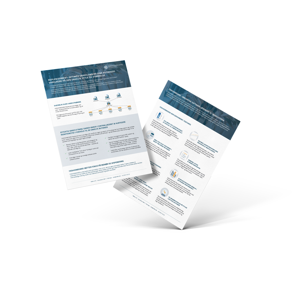 FASHIONBOARD Replenishment hjælper med optimering af lagerbeholdningen og salget i egne eller dine kunders butikker via butikkens POS-data samt relevante informationer fra dit ERP-system.